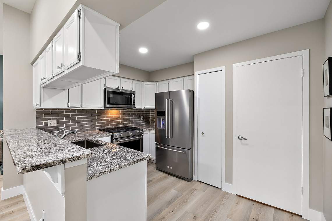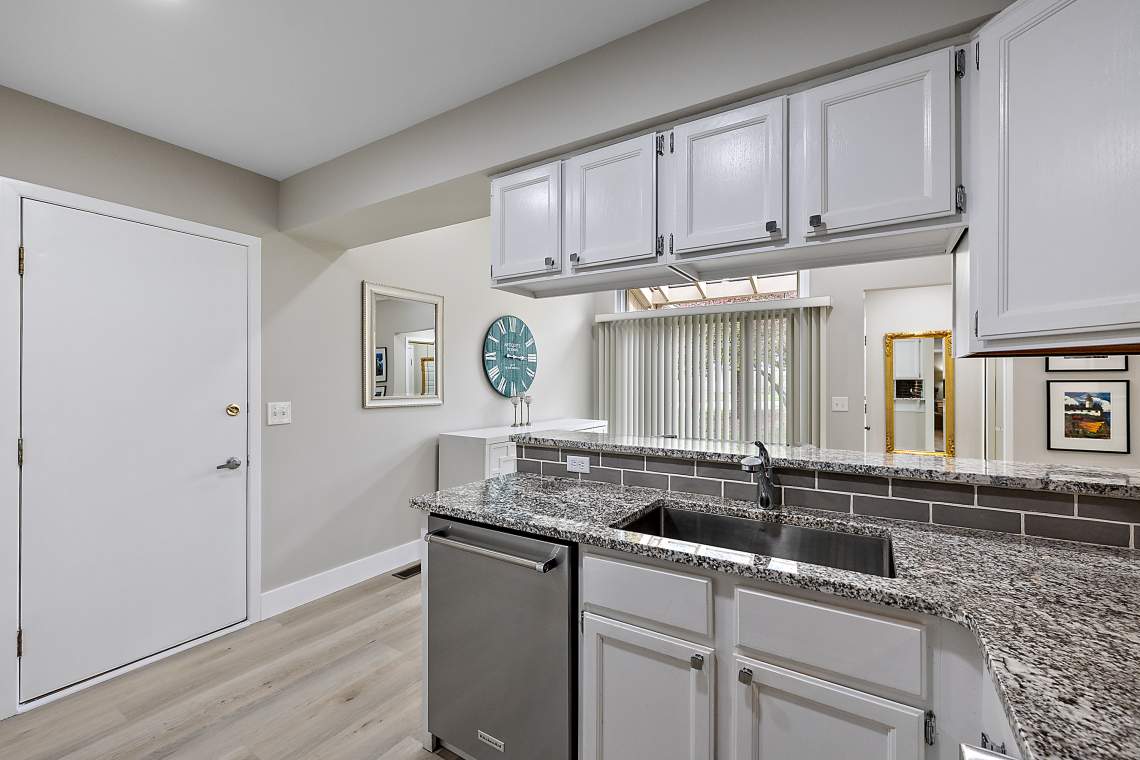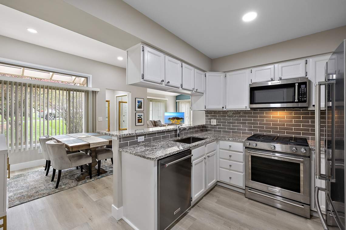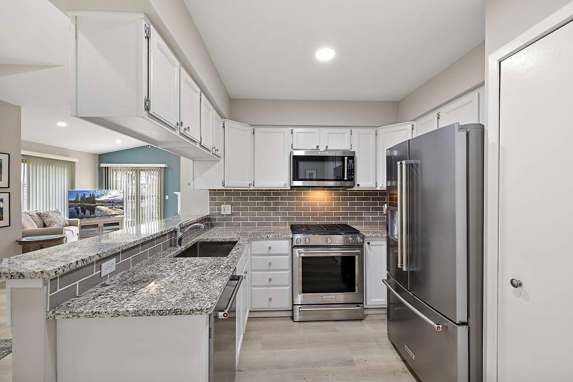 The beautifully remodeled primary bathroom (October 2025) features stylish new flooring, new vanity, trim, and a custom tile shower with a premium glass door. Additional October 2025 upgrades include high-quality LVP flooring, new baseboards, recessed lighting, a ceiling fan, and a striking tile fireplace surround. The 2020 kitchen makeover offers granite countertops, freshly painted white cabinetry, and stainless steel KitchenAid appliances—all included—creating a bright and functional space for everyday living and entertaining. The inviting great room centers around a gas log fireplace with a custom mantle and new tile surround, while the finished walkout basement expands your living space with family room, a bedroom (featuring large daylight windows), a half bath, and serene views of a peaceful green valley. Baseboard electric heat ensures comfort year-round. There is plenty of space for a home office or two! Major mechanical updates include windows and siding (2011), garage door and opener (2010), furnace (2005), and hot water heater (2006).